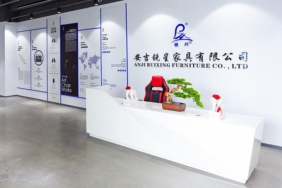 আঞ্জি রুইক্সিং ফার্নিচার একটি পেশাদার কারখানা যা গেমিং এবং অফিস চেয়ারে প্রধান। এটি চীনের ঝেজিয়াং প্রদেশের আনজি কাউন্টির বিশ্ব-বিখ্যাত চেয়ার-মেকিং কাউন্টিতে অবস্থিত যা সাংহাইয়ের কাছে, 1500 বর্গ মিটারেরও বেশি এলাকা জুড়ে প্রায় 200 জন কর্মী রয়েছে।