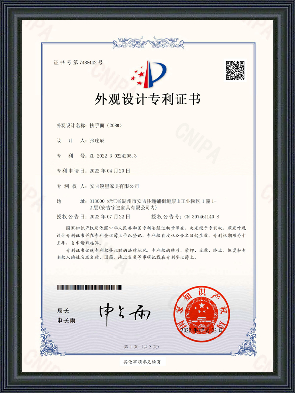 আর্মরেস্ট সারফেস (2080) চেহারা পেটেন্ট