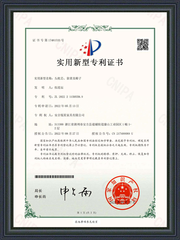 হেডরেস্ট কোর, ব্যাকরেস্ট এবং চেয়ারের জন্য পেটেন্ট