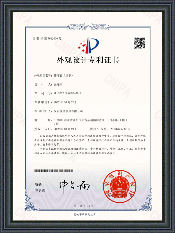টেলিস্কোপিক হাতা (তিন বিভাগ) চেহারা নকশা পেটেন্ট
